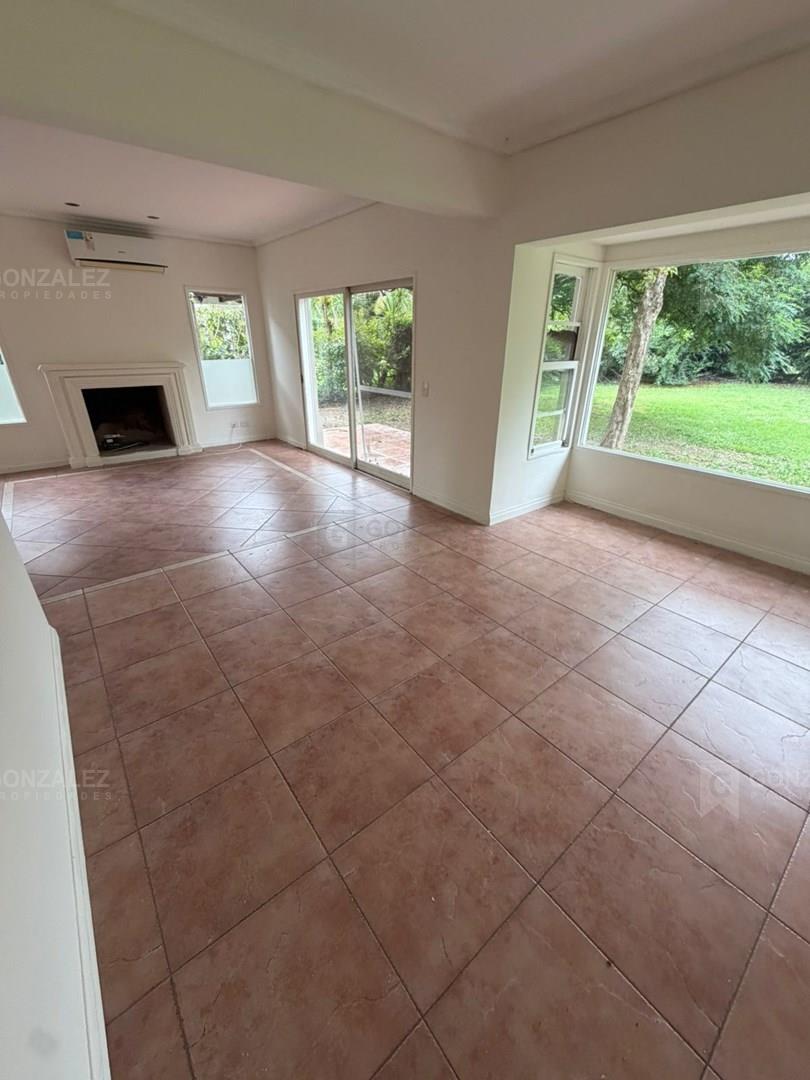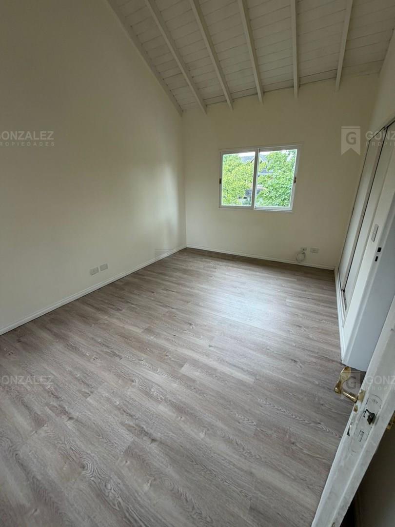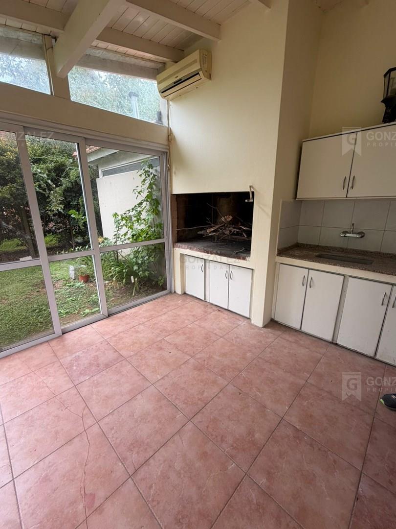 Casa en venta en La Delfina Propiedad desarrollada en dos plantas, ubicada en un entorno tranquilo y arbolado, ideal para vivienda permanente o casa de fin de semana. En planta baja se encuentra un amplio living-comedor, cocina con comedor diario, toilette de recepción y dependencia de servicio con baño. Planta alta dormitorio principal en suite con baño y doble placard. Además, dos dormitorios adicionales que comparten un baño completo. En su exterior parque y galería cerrada con parrilla, ideal para disfrutar de reuniones y momentos al aire libre